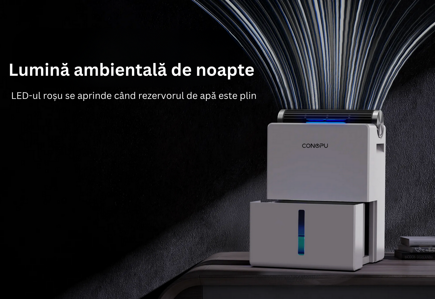 Dezumidificator Profesional CONOPU 3 in 1, Portabil, Detasabil, 800mL/zi, uscare+mod de repaus,casa,subsol, birou, 80m², 180m³/h
